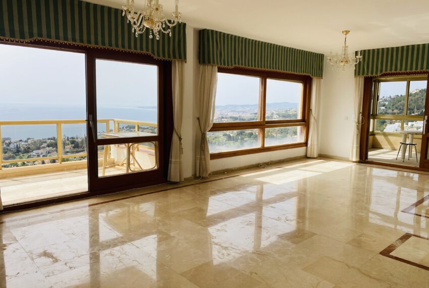 To the left of the main entrance, the hallway leads to the 4 main bedrooms. Master bedroom with ensuite bathroom and direct access to the enclosed terrace (which could be opened again). 3 large double bedrooms and 2 bathrooms, all need updating but all have windows with good views.