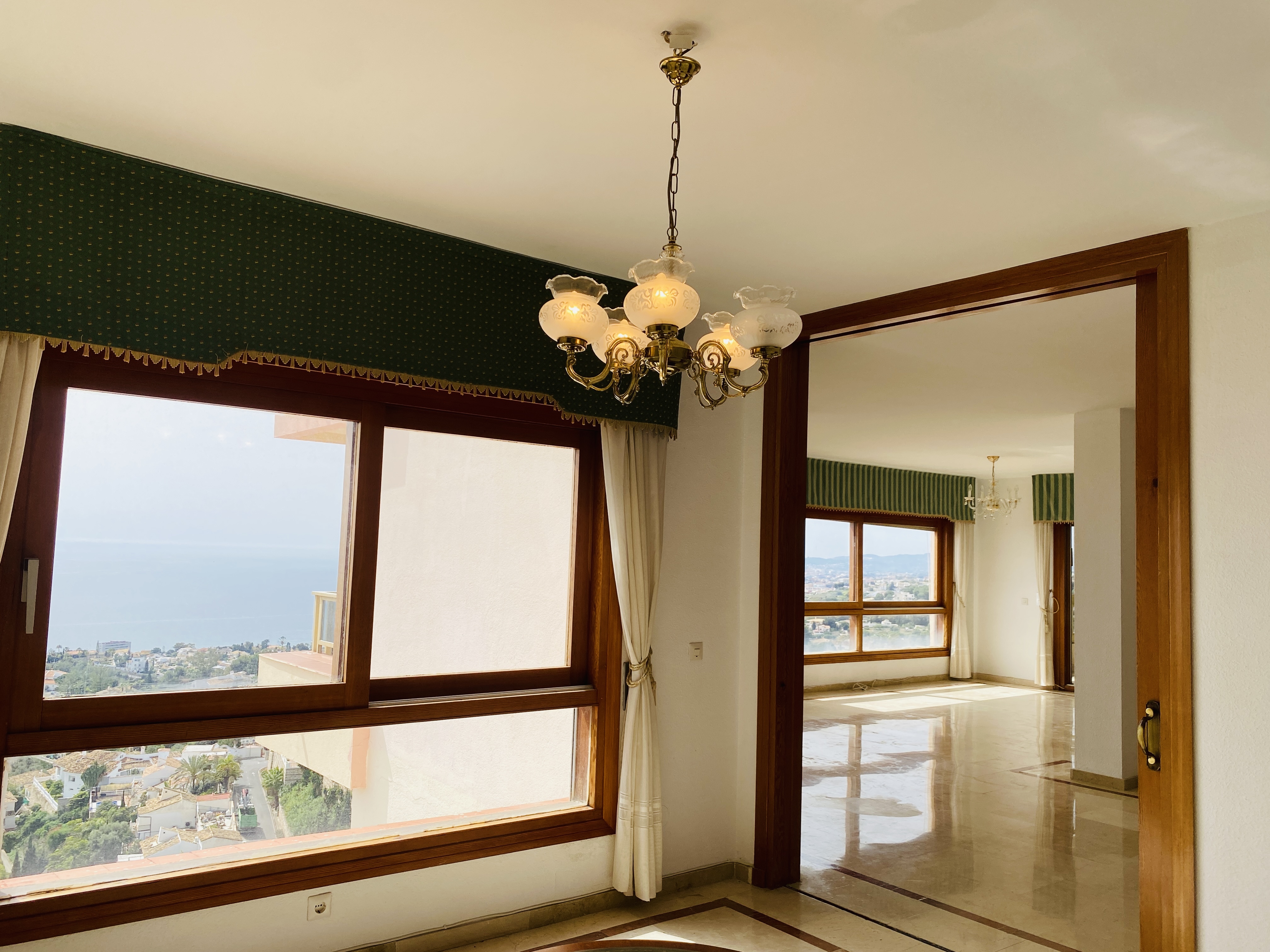 Through the main door you enter to a hallway, directly in front (through double doors) is the open living area, open outside terrace, a large lounge with fire placement to the right, another terrace (enclosed) and dining room off to the left with another terrace (enclosed). Windows all round give panoramic and amazing views, from Malaga right along the coast towards Fuengorila.